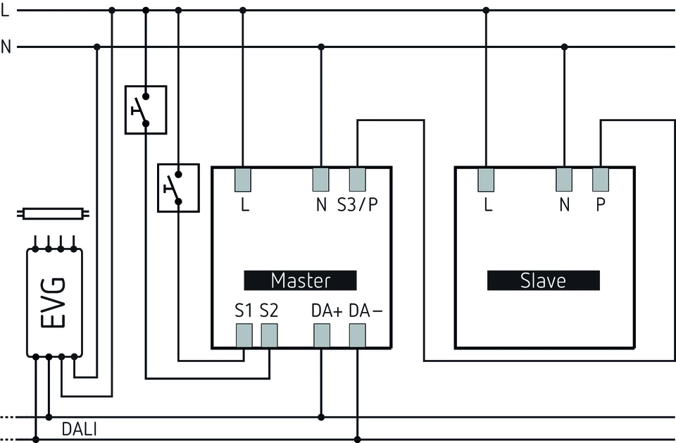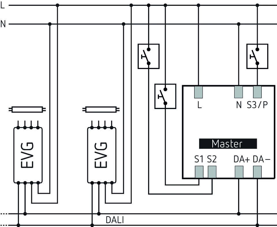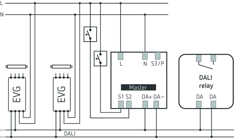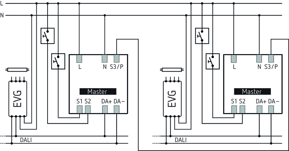 Гъвкаво присвояване на до 3 светлинни групи към една DALI линия
