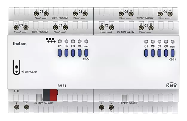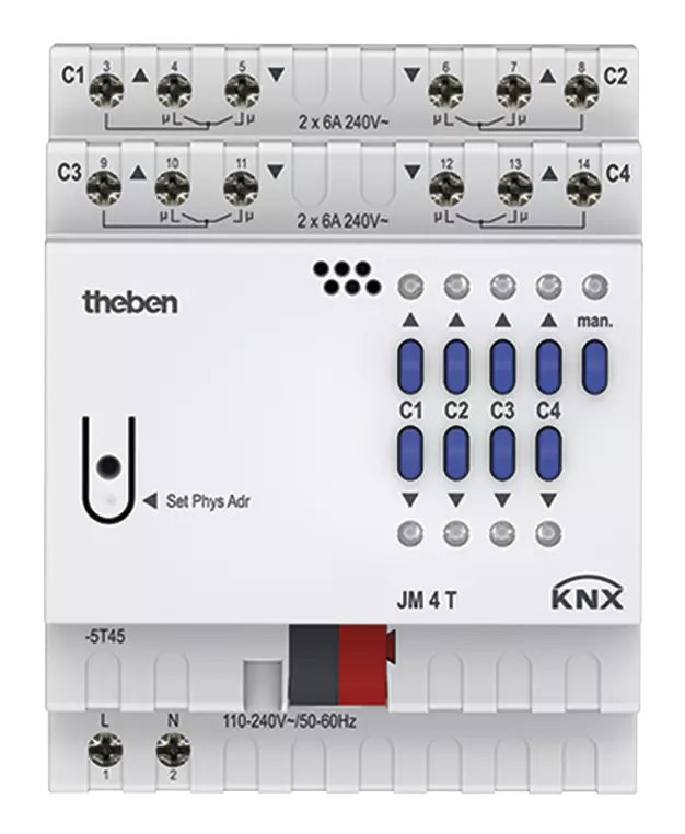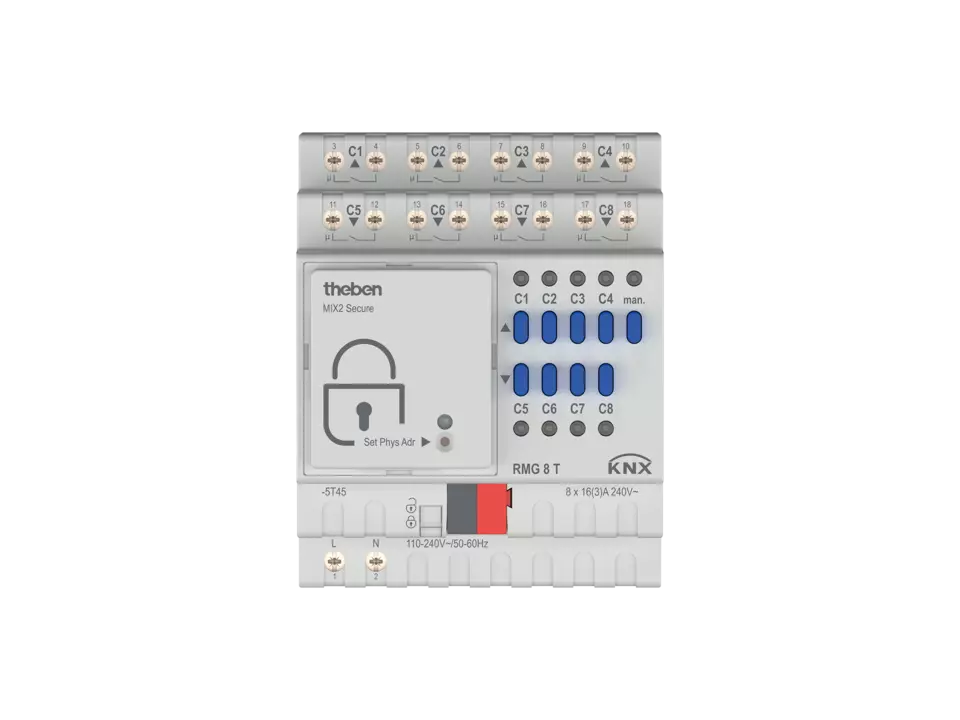 Актуатори DIN шина и шлюзове SMG 2 S KNX (Артикул № 4910273) 2-посочен 1-10 V контролен блок MIX Базов модул MIX Може да се надстрои до максимум 6 канала Научете повече SME 2 S KNX (Артикул № 4910274) 2-посочен 1-10 V контролен блок MIX Разширителен модул MIX За надграждане до максимум 6 канала Научете повече FCA 1 KNX (Артикул № 4920200) Актуатор за вентилаторни конвектори За управление на вентилаторни конвектори За 2 и 4 тръбни системи Научете повече RMG 8 T KNX (Артикул № 4930200) 8-посочен превключвател или 4-посочен задвижващ механизъм за щори MIX2 Базов модул MIX2 Може да се надстрои до максимум 24 канала Научете повече RME 8 T KNX (Артикул № 4930205) 8-посочен превключвател или 4-посочен задвижващ механизъм за щори MIX2 Разширителен модул MIX2 За надграждане до максимум 24 канала Научете повече RMG 4 I KNX (Артикул № 4930210) 4-посочен C задвижващ механизъм за превключване на товара MIX2 С актуално признание За по-високо натоварване на лампата Научете повече RME 4 I KNX (Артикул № 4930215) 4-посочен C задвижващ механизъм за превключване на товара MIX2 С актуално признание За по-високо натоварване на лампата Научете повече RMG 8 S KNX (Артикул № 4930220) 8-посочен превключващ актуатор MIX2 Базов модул MIX2 Може да се надстрои до максимум 24 канала Научете повече RME 8 S KNX (Артикул № 4930225) 8-посочен превключващ актуатор MIX2 Разширителен модул MIX2 За надграждане до максимум 24 канала Научете повече HMG 6 T KNX (Артикул № 4930240) 6-посочен задвижващ механизъм за отопление MIX2 С 6 терморегулатора (P/PI) за отопление и охлаждане Базов модул MIX2 Научете повече HME 6 T KNX (Артикул № 4930245) 6-посочен задвижващ механизъм за отопление MIX2 С 6 терморегулатора (P/PI) за отопление и охлаждане Разширителен модул MIX2 Научете повече JMG 4 T KNX (Артикул № 4930250) 4-посочен механизъм за щори MIX2 Базов модул MIX2 Може да се надстрои до максимум 12 канала Научете повече JME 4 T KNX (Артикул № 4930255) 4-посочен механизъм за щори MIX2 Разширителен модул MIX2 Може да се надстрои до максимум 12 канала Научете повече DMG 2 T KNX (Артикул № 4930270) Двупосочен универсален димер задействащ механизъм MIX2 Базов модул MIX2 Може да се надстрои до максимум 6 канала Научете повече DME 2 T KNX (Артикул № 4930275) Двупосочен универсален димер задействащ механизъм MIX2 Разширителен модул MIX2 За надграждане до максимум 6 канала Научете повече DMB 1 T KNX (Артикул № 4930279) 1 канален димиращ изходен модул за разширение "Dimmbooster" За разширяване на мощността на основни и удължителни задвижващи механизми за димиране за 300 W/VA на канал. Разширяване на мощността до максимум 2000 W/VA чрез използване на макс. Възможни са 4 бустера Научете повече RM 8 T KNX (Артикул № 4940200) 8-посочен превключвател или 4-посочен задвижващ механизъм за щори FIX1 Гъвкав избор на канална функция като превключващ актуатор или за управление на задвижвания за щори, капаци, устройства за защита от слънце и зрение, капандури и вентилационни клапи LED дисплей за статус на превключване за всеки канал Научете повече RM 16 T KNX (Артикул № 4940205) 16-посочен превключвател или 8-посочен задвижващ механизъм за щори FIX2 Гъвкав избор на канална функция като превключващ актуатор или за управление на задвижвания за щори, капаци, устройства за защита от слънце и зрение, капандури и вентилационни клапи LED дисплей за статус на превключване за всеки канал Научете повече RM 4 I KNX (Артикул № 4940210) 4-посочен C задвижващ механизъм за превключване на товара FIX1 С актуално признание За по-високо натоварване на лампата Научете повече RM 8 I
