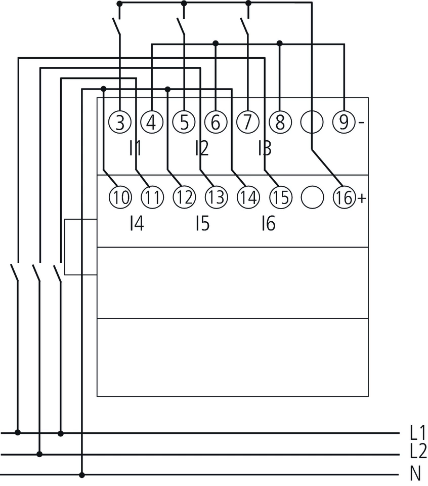 6 плаващи универсални и широкообхватни входа за напрежение (10-240 V AC/DC или вътрешно генерирано спомагателно напрежение от приблизително 12 V DC)