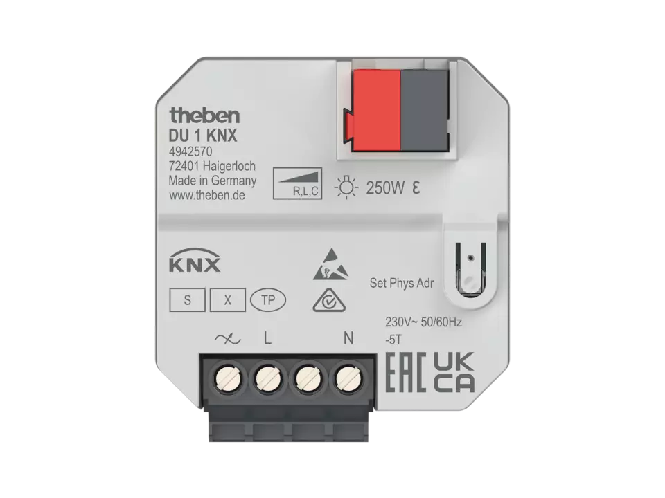 Оптимизиран димиращ изход за димируеми енергоспестяващи лампи, светодиоди, лампи с нажежаема жичка и халогенни лампи и димируеми трансформатори Научете повечеDU 1 DALI KNX(Артикул № 4942580)