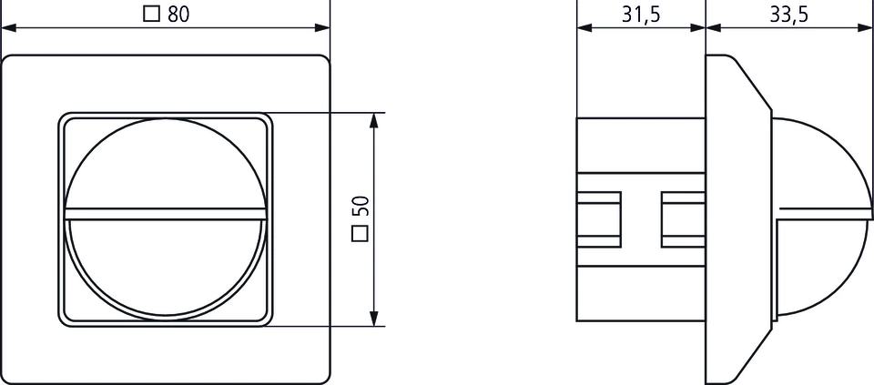 Полукръгла зона на детекция 200°, Ø 16 m, (100 m2)