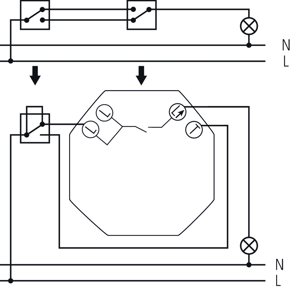 1 канална светлина (триак, 230 V), 2 проводна връзка, идеална за преоборудване