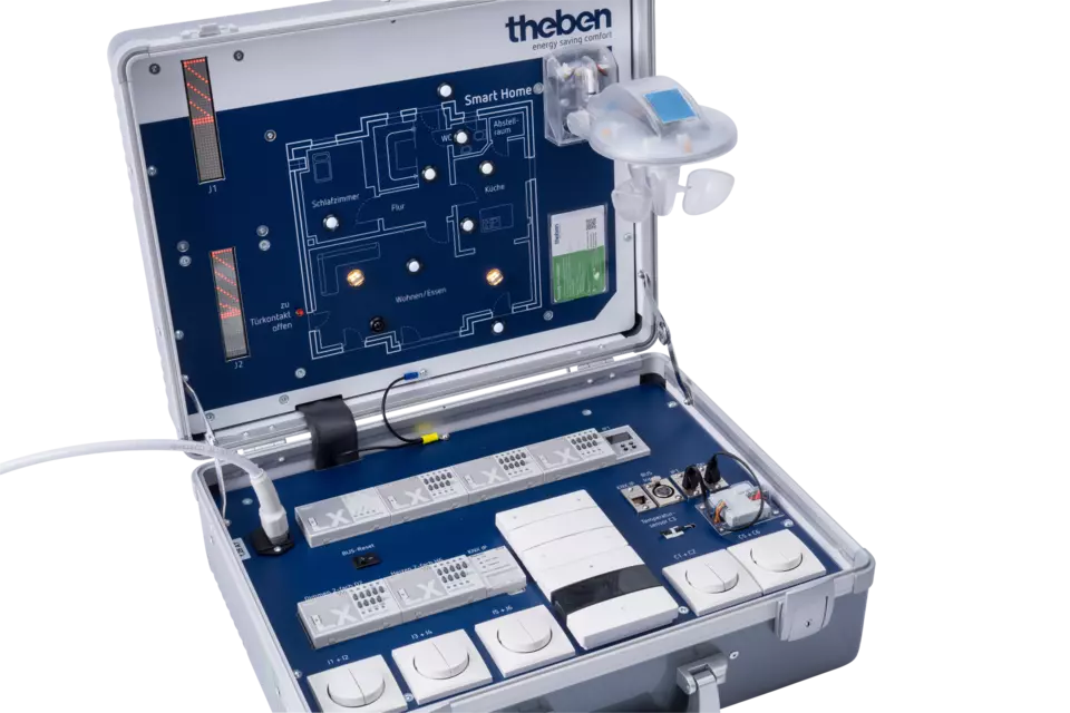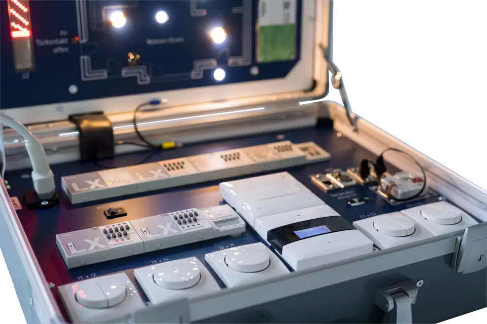 Съдържа 12 продукта LUXORliving, които могат да бъдат пуснати в експлоатация и параметризирани за целите на обучението